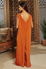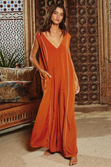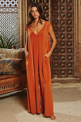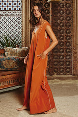 Contrast Stitching Wide Leg Jumpsuit Rust
