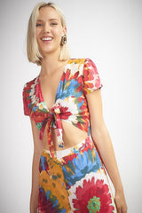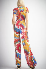 Floral Tie Dye Tie Front Jumpsuit Multi-Color