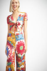 Floral Tie Dye Tie Front Jumpsuit