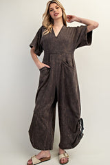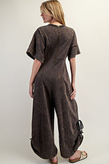Mineral Washed V-Neck Jumpsuit Ash Black
