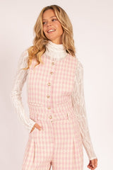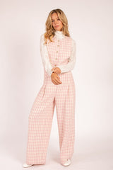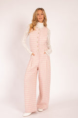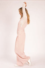 Plaid Sleeveless Jumpsuit with Button Front Pink