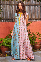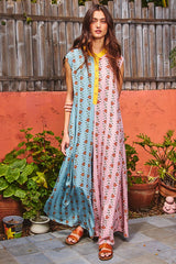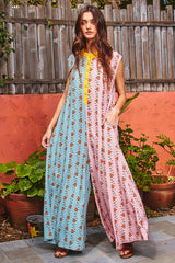 Wide Leg Floral Print Woven Jumpsuit Mauve/Teal