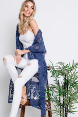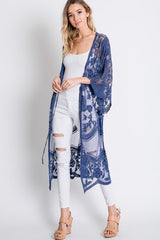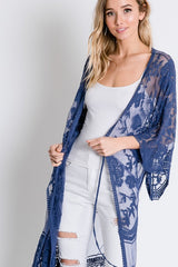 Sheer Lace Kimini Maxi Cardigan Denim Blue