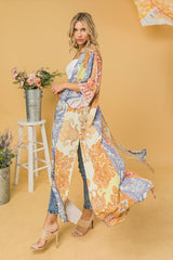 Woven Print Maxi Kimono Multi-Color