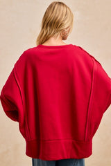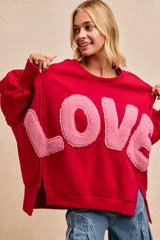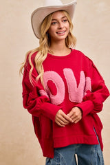 Brushed Terry Love Patchwork Fleece Top Red