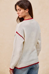 Christmas Pompom LatterMerry Sweater Top Ivory