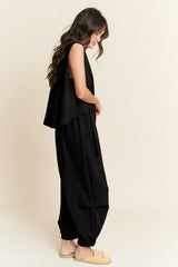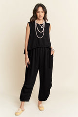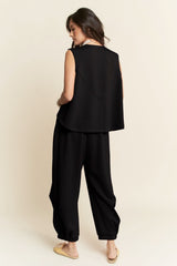 Cinch Tie Top Waistband Pants Set Black