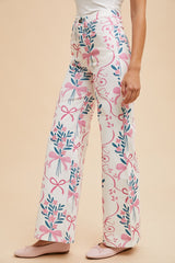 Flower & Bow Print Wide Leg Jeans Ivory