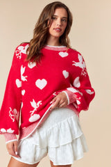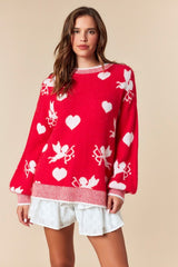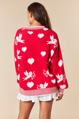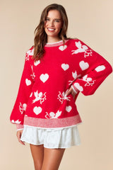 Cupid Heart Rib Detail Knit Sweater Red