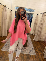Dolman Half Sleeve Oversize Top Pink