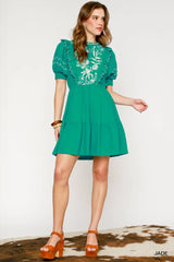 Embroidered Round Neck Mini Dress Jade
