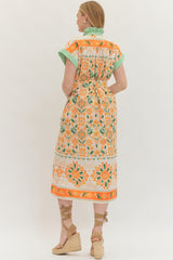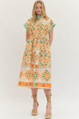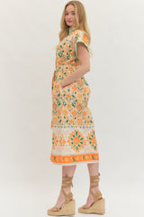 Floral Print Short Sleeve Midi Dress Orange