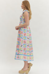 Fruit Print Sleeveless Midi Dress Blue