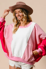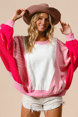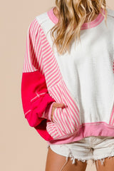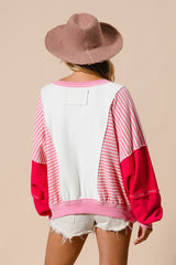 Heavy Loop Terry Stripe Pullover Ivory/Fuchsia
