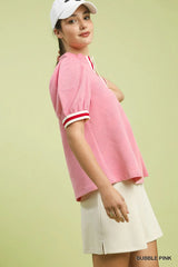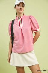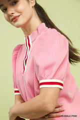 Jacquard Textured Puff Sleeve Top Bubble Pink