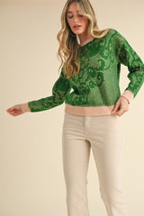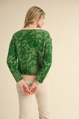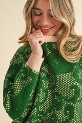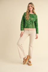 Lace Knit Pattern Sweater Green