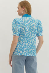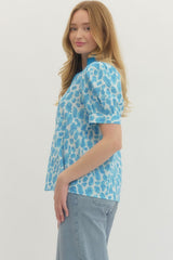 Leopard Print Puff Sleeve Top Sky Blue
