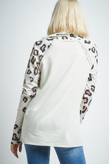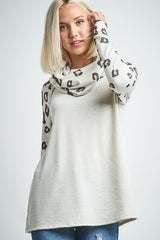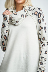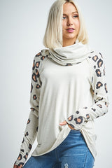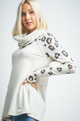 Leopard Print Sleeve Cowl Neck Top Oatmeal