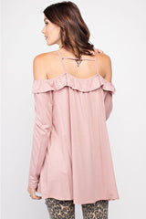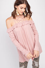 Long Sleeve Lace Up Front & Back Tunic Mauve