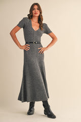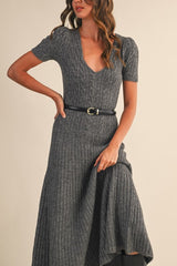 Low Scoop Neckline Cable Knit Dress Charcoal