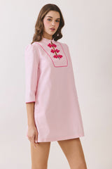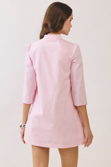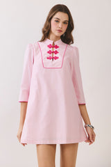 Mandarin Collar Contrast Dress Pink