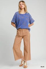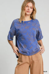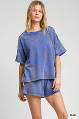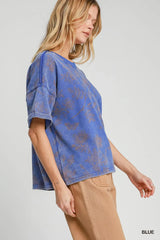 Mineral Wash Round Neck Top Blue