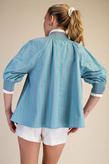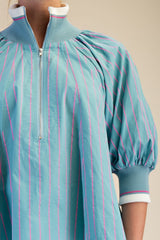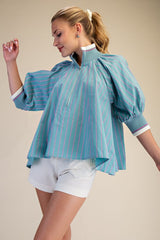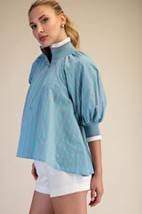 Mock Neck Band Puff Sleeve Blouse Top Mint