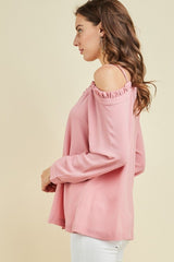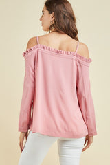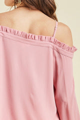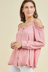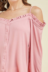 Off Shoulder Button Up Ruffle Top Dusty Rose