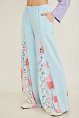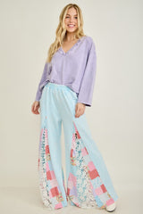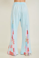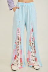 Patchwork Floral Lace Flare Pants Baby Blue