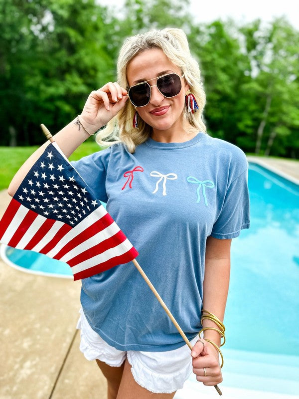 Patriotic Colored Ribbon Trio Puff Tee Top Blue