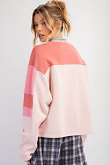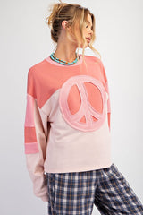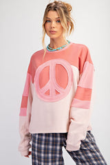 Peace Patch Front Terry Knit Pullover Rose Pink