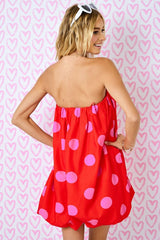 Polka Dot Strapless Balloon Dress Red
