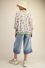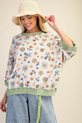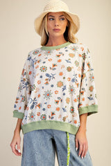 Printed Waffle Knit Top Sage Rust