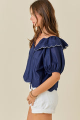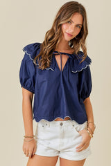 Scallop Hem Top Navy/White