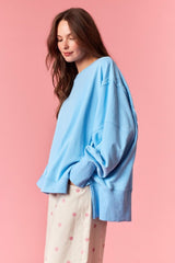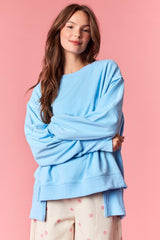 Solid French Terry Oversized Sweatshirt Blue
