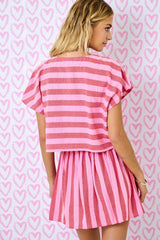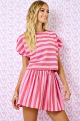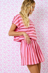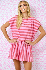 Striped Drop Shoulder Boxy Cropped Top Red