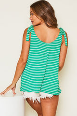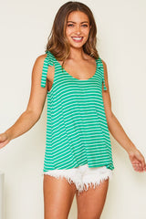 Striped Knit Shoulder Tie Tank Top Green