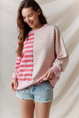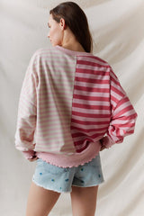 Striped Lettuce Hem Top Pink/Light Pink
