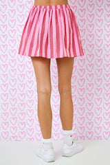 Striped Shirred Mini Skirt With Elastic Waist Red