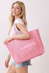 Summer Embroidery Tote Bag Pink