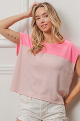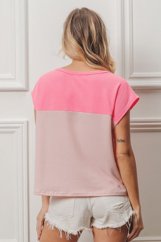 Thermal Color Block Top Neon Pink/Blush