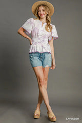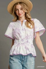 Timeless Toile Print Peplum Top Lavender
