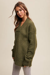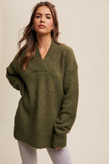 V-neck Slouchy Soft Knit Sweater Olive