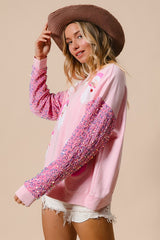 Velvet Sequin Sleeve Santa Christmas Top Pink