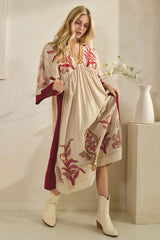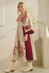 Vintage Embroidery Dress Burgundy