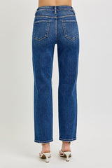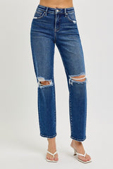 High Rise Crop Girlfriend Jeans Dark Denim