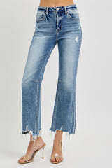 High Rise Crop Straight Distressed Hem Jeans Medium