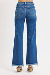 Mid Rise Ankle Straight Fray Hem Jeans Dark