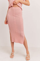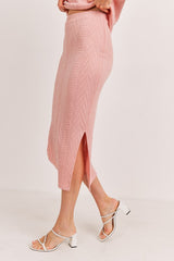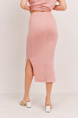 Cable Knit Midi Length Pencil Skirt Pink