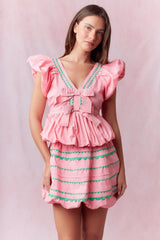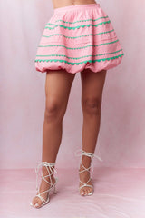 Ric Rac Trim Detail Bubble Hem Skirt Pink